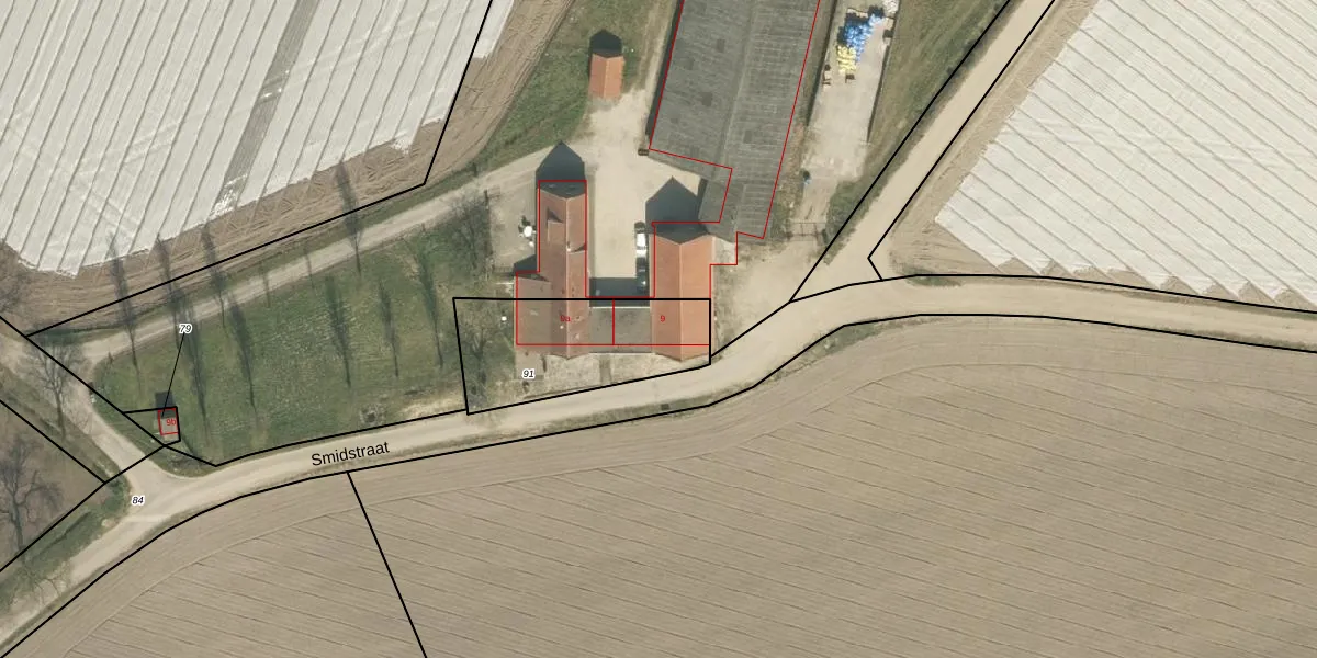 Smidstraat 9-a is gelegen op kadastraal perceel HSL00L91. Deze kadastrale aanduiding is uniek en wordt gebruikt door het Kadaster om eigendomsrechten en andere zakelijke rechten vast te leggen. Het perceel maakt onderdeel uit van de kadastrale gemeente Hunsel.