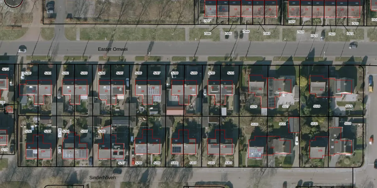 Gebruik de zoekbalk of klik op een perceel voor informatie over de adressen binnen dit perceel.