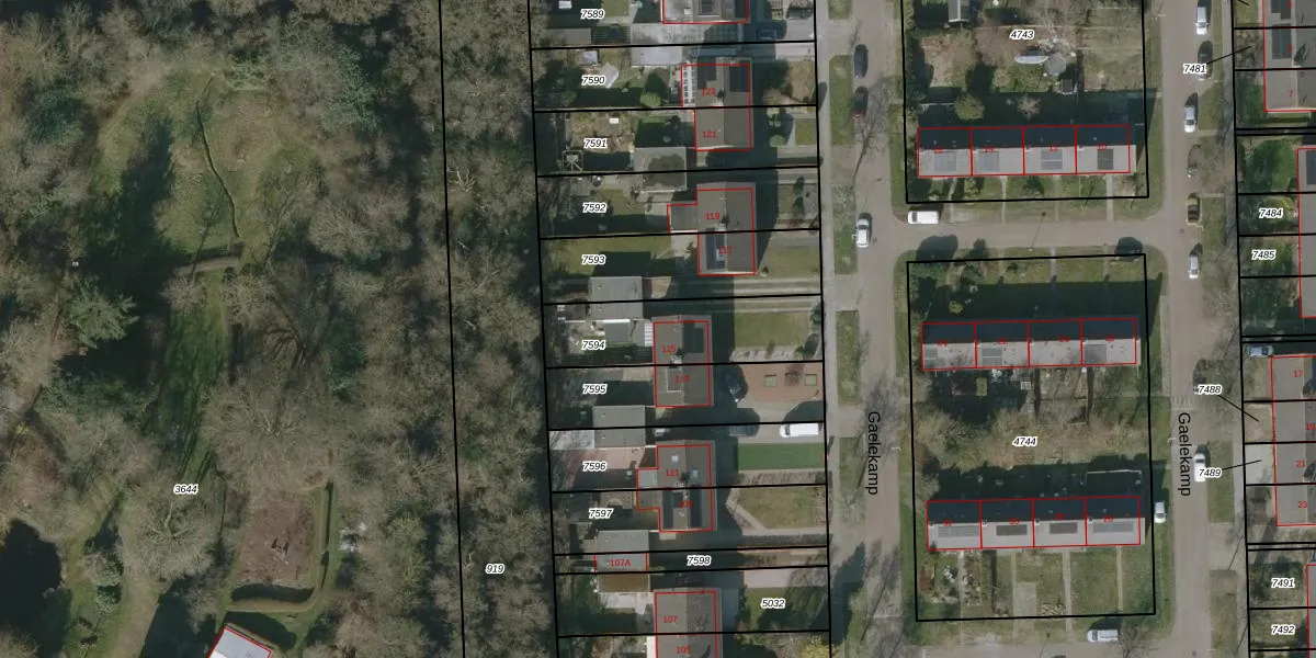 Gaelekamp 115 is gelegen op kadastraal perceel HDG00A7594. Deze kadastrale aanduiding is uniek en wordt gebruikt door het Kadaster om eigendomsrechten en andere zakelijke rechten vast te leggen. Het perceel maakt onderdeel uit van de kadastrale gemeente Hardegarijp.