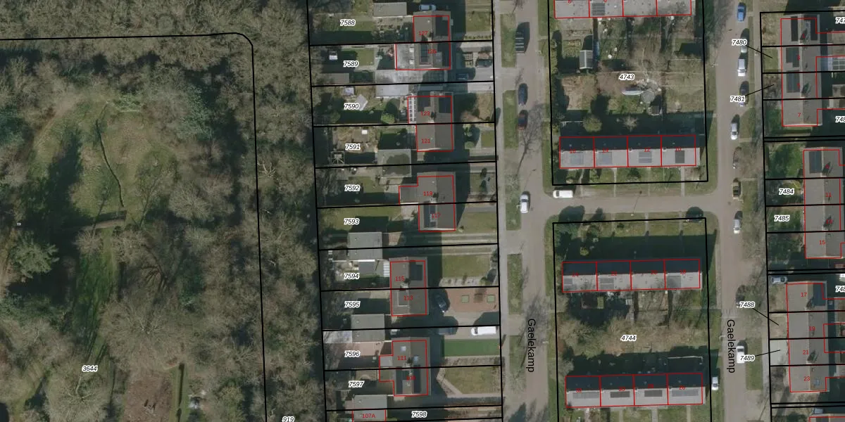 Het perceel waarop Gaelekamp 117 staat heeft een oppervlakte van 432 m². Dit is een groot perceel. De perceeloppervlakte wordt geregistreerd door het Kadaster. Gedetailleerde informatie over de maten van dit perceel kunt u vinden in het rapport Kadastrale kaart met maatvoering van Gaelekamp 117.