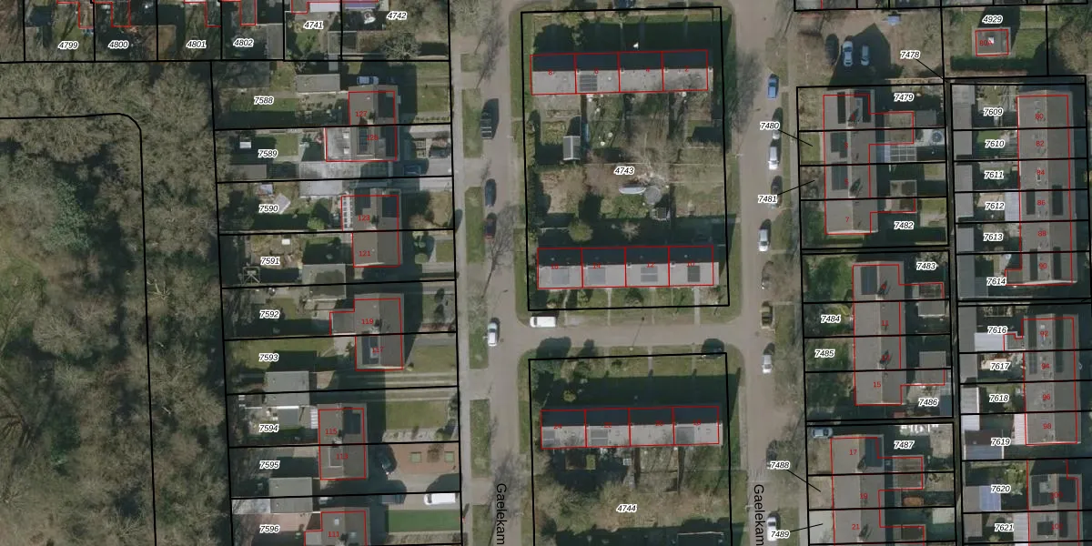 Het perceel waarop Gaelekamp 16 staat heeft een oppervlakte van 1973 m². Dit is een zeer groot perceel. De perceeloppervlakte wordt geregistreerd door het Kadaster. Gedetailleerde informatie over de maten van dit perceel kunt u vinden in het rapport Kadastrale kaart met maatvoering van Gaelekamp 16.