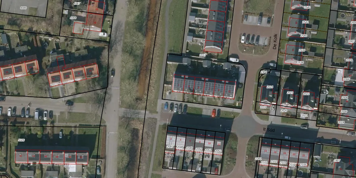 Het perceel waarop It Súd 1 staat heeft een oppervlakte van 3268 m². Dit is een zeer groot perceel. De perceeloppervlakte wordt geregistreerd door het Kadaster. Gedetailleerde informatie over de maten van dit perceel kunt u vinden in het rapport Kadastrale kaart met maatvoering van It Súd 1.
