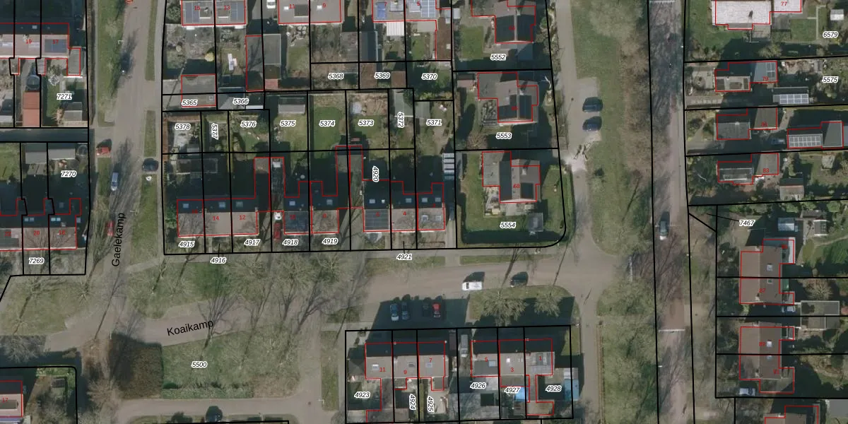 Het perceel waarop Koaikamp 2 staat heeft een oppervlakte van 333 m². Dit is een groot perceel. De perceeloppervlakte wordt geregistreerd door het Kadaster. Gedetailleerde informatie over de maten van dit perceel kunt u vinden in het rapport Kadastrale kaart met maatvoering van Koaikamp 2.