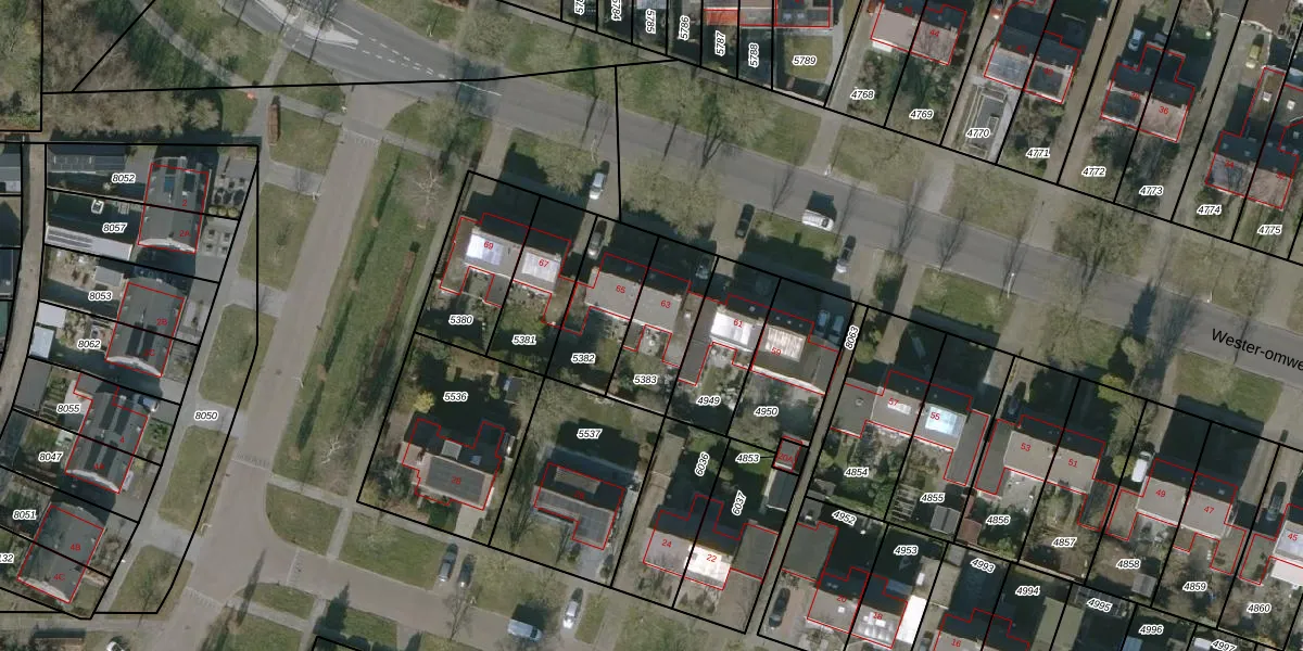 Het perceel waarop Wester-omwei 63 staat heeft een oppervlakte van 252 m². Dit is een middelgroot perceel. De perceeloppervlakte wordt geregistreerd door het Kadaster. Gedetailleerde informatie over de maten van dit perceel kunt u vinden in het rapport Kadastrale kaart met maatvoering van Wester-omwei 63.