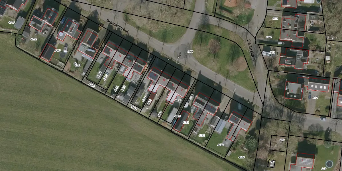 Gebruik de zoekbalk of klik op een perceel voor informatie over de adressen binnen dit perceel.