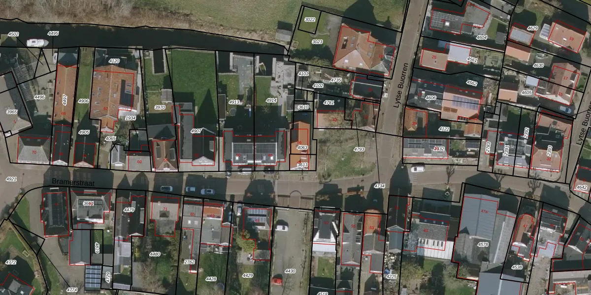 Bramerstraat 46 is gelegen op kadastraal perceel LWR02E4063. Deze kadastrale aanduiding is uniek en wordt gebruikt door het Kadaster om eigendomsrechten en andere zakelijke rechten vast te leggen. Het perceel maakt onderdeel uit van de kadastrale gemeente Langweer.