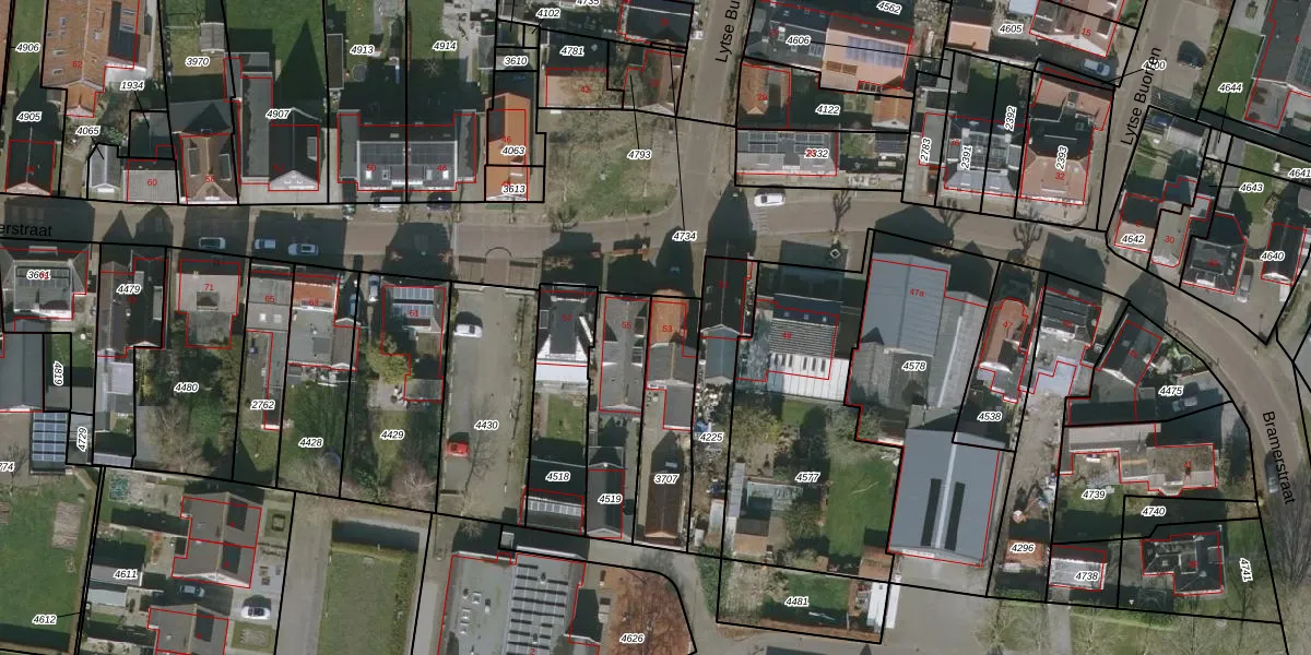 Het perceel waarop Bramerstraat 53 staat heeft een oppervlakte van 300 m². Dit is een groot perceel. De perceeloppervlakte wordt geregistreerd door het Kadaster. Gedetailleerde informatie over de maten van dit perceel kunt u vinden in het rapport Kadastrale kaart met maatvoering van Bramerstraat 53.