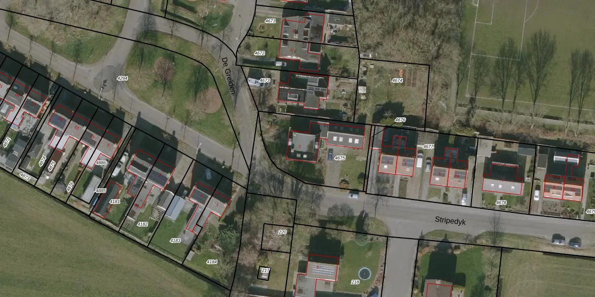 Het perceel waarop De Greiden 2 staat heeft een oppervlakte van 670 m². Dit is een groot perceel. De perceeloppervlakte wordt geregistreerd door het Kadaster. Gedetailleerde informatie over de maten van dit perceel kunt u vinden in het rapport Kadastrale kaart met maatvoering van De Greiden 2.