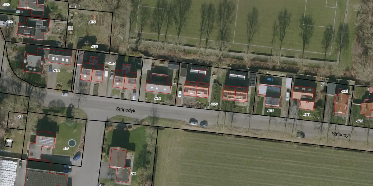 Het perceel waarop Stripedyk 9 staat heeft een oppervlakte van 940 m². Dit is een groot perceel. De perceeloppervlakte wordt geregistreerd door het Kadaster. Gedetailleerde informatie over de maten van dit perceel kunt u vinden in het rapport Kadastrale kaart met maatvoering van Stripedyk 9.