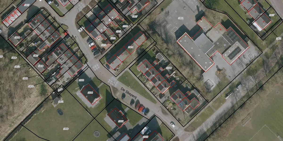 Het perceel waarop De Skeperij 11 staat heeft een oppervlakte van 1386 m². Dit is een zeer groot perceel. De perceeloppervlakte wordt geregistreerd door het Kadaster. Gedetailleerde informatie over de maten van dit perceel kunt u vinden in het rapport Kadastrale kaart met maatvoering van De Skeperij 11.