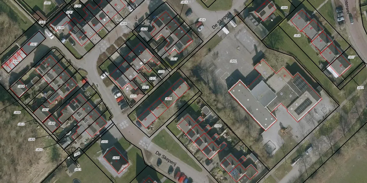 Het perceel waarop De Skeperij 19 staat heeft een oppervlakte van 640 m². Dit is een groot perceel. De perceeloppervlakte wordt geregistreerd door het Kadaster. Gedetailleerde informatie over de maten van dit perceel kunt u vinden in het rapport Kadastrale kaart met maatvoering van De Skeperij 19.