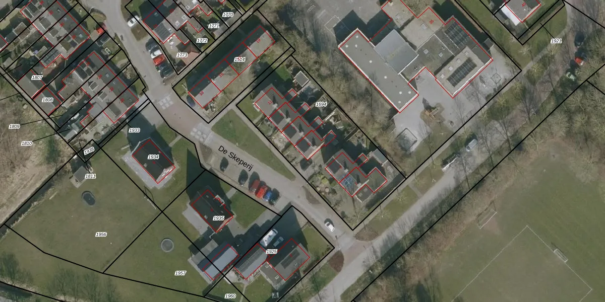 Het perceel waarop De Skeperij 5 staat heeft een oppervlakte van 1386 m². Dit is een zeer groot perceel. De perceeloppervlakte wordt geregistreerd door het Kadaster. Gedetailleerde informatie over de maten van dit perceel kunt u vinden in het rapport Kadastrale kaart met maatvoering van De Skeperij 5.