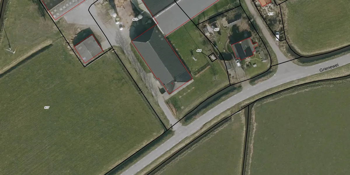 Grienewei 5 is gelegen op kadastraal perceel EEX00H463. Deze kadastrale aanduiding is uniek en wordt gebruikt door het Kadaster om eigendomsrechten en andere zakelijke rechten vast te leggen. Het perceel maakt onderdeel uit van de kadastrale gemeente Ee.