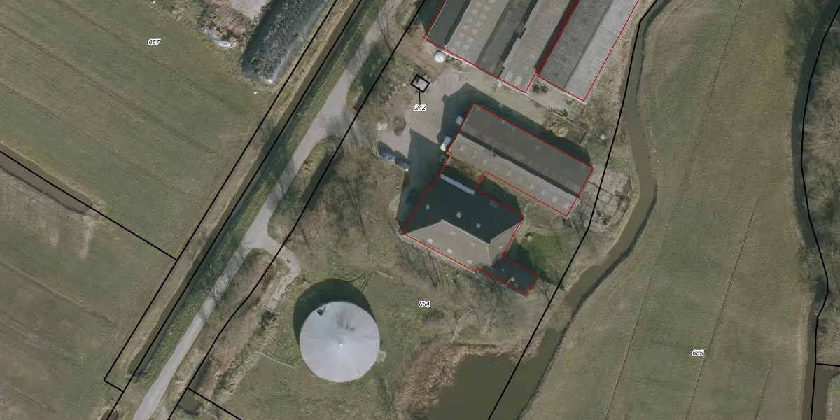 Het perceel waarop het adres ligt is EEX00-K-664. De afkorting 'EEX00' staat voor kadastrale gemeente Ee. De gemiddelde perceelgrootte in Ee is 1,0 ha. Dit perceel is kleiner: de perceeloppervlakte bedraagt 9140 m². De grootste perceeloppervlakte in de kadastrale gemeente is 24,3 ha. De kleinste oppervlakte bedraagt 1 m². Dit is het enige adres dat aanwezig is op het perceel. In de Basisregistratie Kadaster (BRK) werden de grenzen van het perceel geregistreerd op 15-01-1998.