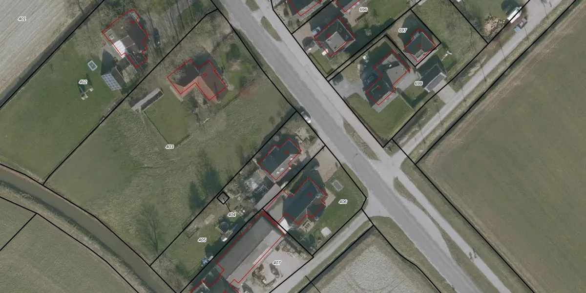 Het adres is gelegen op perceel 405 in de sectie H en de kadastrale gemeente Ee. De kadastrale aanduiding is aldus EEX00-H-405. Het perceel is 1010 m² groot. Dat is kleiner dan de gemiddelde perceeloppervlakte in Ee, dat op 1,0 ha ligt. De grootste perceeloppervlakte in de kadastrale gemeente is 24,3 ha. De kleinste oppervlakte bedraagt 1 m². Er zijn geen andere adressen aanwezig op het perceel. In de Basisregistratie Kadaster (BRK) werden de grenzen van het perceel geregistreerd op 15-01-1998.