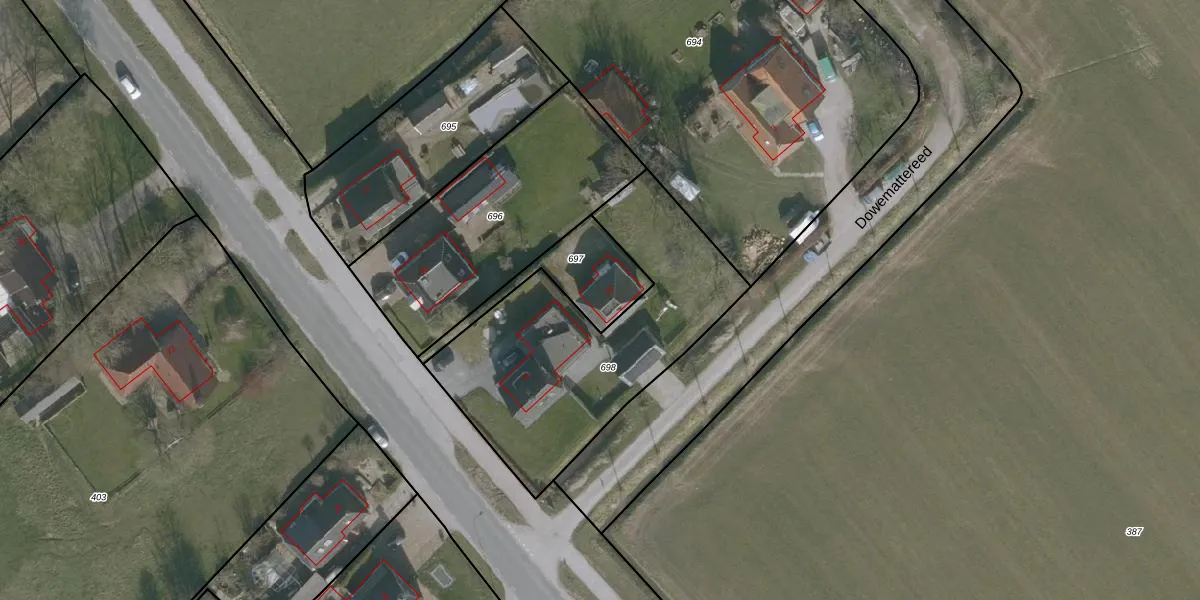 Het adres is gelegen op perceel 697 in de sectie K en de kadastrale gemeente Ee. De kadastrale aanduiding is aldus EEX00-K-697. Het perceel is 233 m² groot. Dat is kleiner dan de gemiddelde perceeloppervlakte in Ee, dat op 1,0 ha ligt. De grootste perceeloppervlakte in de kadastrale gemeente is 24,3 ha. De kleinste oppervlakte bedraagt 1 m². Op het perceel bevinden zich geen andere adressen. In de Basisregistratie Kadaster (BRK) werden de grenzen van het perceel geregistreerd op 15-01-1998.