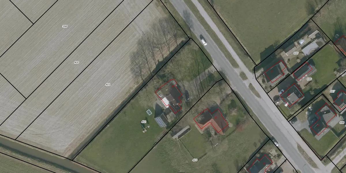 Het adres is gelegen op perceel 402 in de sectie H en de kadastrale gemeente Ee. De kadastrale aanduiding is aldus EEX00-H-402. Het perceel is 2700 m² groot. Dat is kleiner dan de gemiddelde perceeloppervlakte in Ee, dat op 1,0 ha ligt. De grootste perceeloppervlakte in de kadastrale gemeente is 24,3 ha. De kleinste oppervlakte bedraagt 1 m². Op het perceel bevinden zich geen andere adressen. De huidige grenzen van het perceel zijn digitaal in de Basisregistratie Kadaster (BRK) geregistreerd op 14-08-2000.
