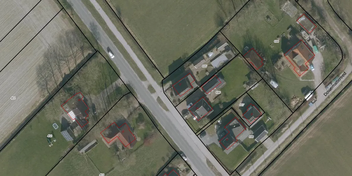 Het adres is gelegen op perceel 695 in de sectie K en de kadastrale gemeente Ee. De kadastrale aanduiding is aldus EEX00-K-695. Het perceel is 770 m² groot. Dat is kleiner dan de gemiddelde perceeloppervlakte in Ee, dat op 1,0 ha ligt. De grootste perceeloppervlakte in de kadastrale gemeente is 24,3 ha. De kleinste oppervlakte bedraagt 1 m². Op het perceel bevinden zich geen andere adressen. In de Basisregistratie Kadaster (BRK) werden de grenzen van het perceel geregistreerd op 15-01-1998.