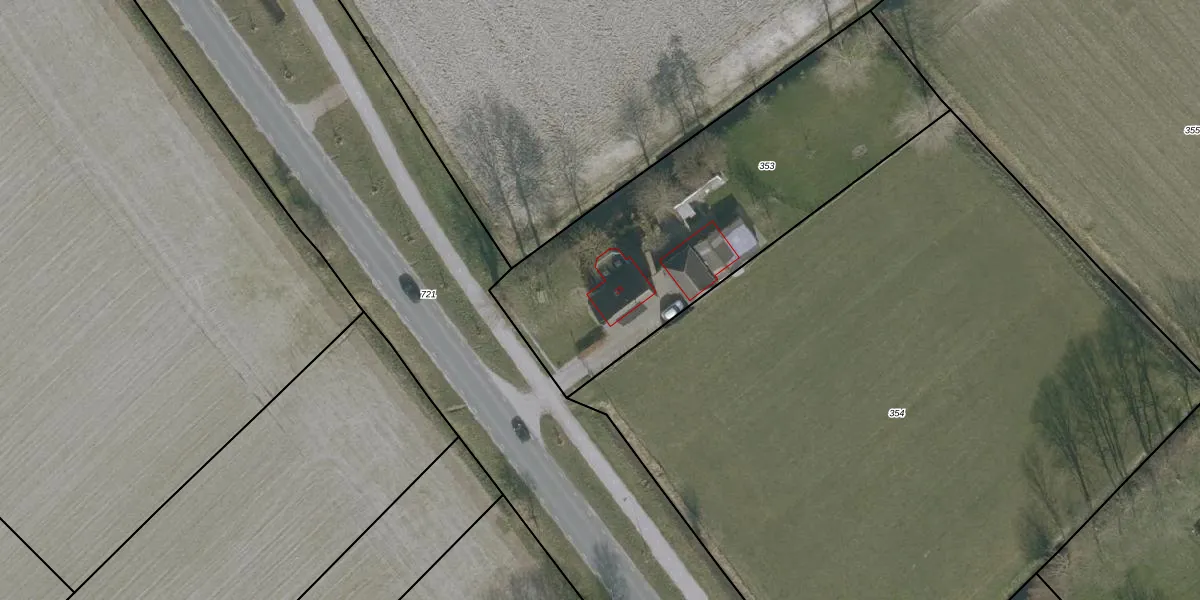 Het adres is gelegen op perceel 353 in de sectie K en de kadastrale gemeente Ee. De kadastrale aanduiding is aldus EEX00-K-353. Het perceel is 1660 m² groot. Dat is kleiner dan de gemiddelde perceeloppervlakte in Ee, dat op 1,0 ha ligt. De grootste perceeloppervlakte in de kadastrale gemeente is 24,3 ha. De kleinste oppervlakte bedraagt 1 m². Dit is het enige adres dat aanwezig is op het perceel. De huidige grenzen van het perceel zijn digitaal in de Basisregistratie Kadaster (BRK) geregistreerd op 15-01-1998.
