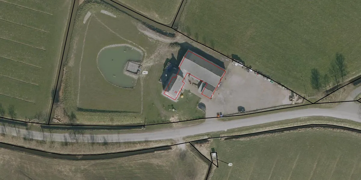 Het adres is gelegen op perceel 960 in de sectie H en de kadastrale gemeente Ee. De kadastrale aanduiding is aldus EEX00-H-960. De gemiddelde perceelgrootte in Ee is 1,0 ha. Dit perceel is kleiner: de perceeloppervlakte bedraagt 6145 m². Het kleinste perceel in de kadastrale gemeente is 1 m² groot. De grootste perceeloppervlakte is 24,3 ha. Op het perceel bevinden zich geen andere adressen. De huidige grenzen van het perceel zijn digitaal in de Basisregistratie Kadaster (BRK) geregistreerd op 06-08-2020.
