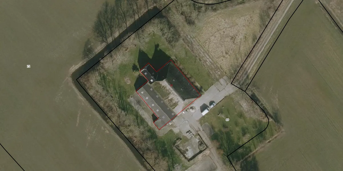 Het adres is gelegen op perceel 69 in de sectie H en de kadastrale gemeente Ee. De kadastrale aanduiding is aldus EEX00-H-69. De gemiddelde perceelgrootte in Ee is 1,0 ha. Dit perceel is kleiner: de perceeloppervlakte bedraagt 9900 m². Het kleinste perceel in de kadastrale gemeente is 1 m² groot. De grootste perceeloppervlakte is 24,3 ha. Op het perceel bevinden zich geen andere adressen. In de Basisregistratie Kadaster (BRK) werden de grenzen van het perceel geregistreerd op 15-01-1998.