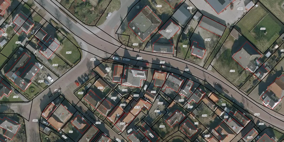 Het perceel waarop Uniastrjitte 3 staat heeft een oppervlakte van 345 m². Dit is een groot perceel. De perceeloppervlakte wordt geregistreerd door het Kadaster. Gedetailleerde informatie over de maten van dit perceel kunt u vinden in het rapport Kadastrale kaart met maatvoering van Uniastrjitte 3.