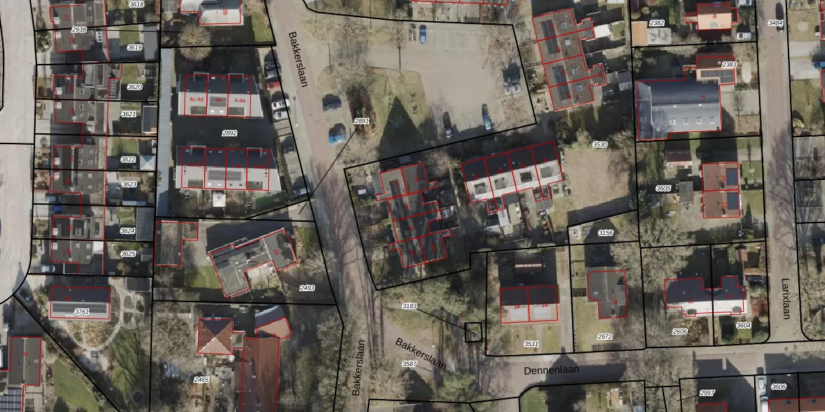 Het perceel waarop Bakkerslaan 43 staat heeft een oppervlakte van 4516 m². Dit is een zeer groot perceel. De perceeloppervlakte wordt geregistreerd door het Kadaster. Gedetailleerde informatie over de maten van dit perceel kunt u vinden in het rapport Kadastrale kaart met maatvoering van Bakkerslaan 43.