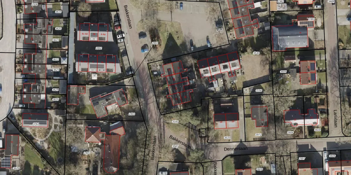 Het perceel waarop Bakkerslaan 45 staat heeft een oppervlakte van 4516 m². Dit is een zeer groot perceel. De perceeloppervlakte wordt geregistreerd door het Kadaster. Gedetailleerde informatie over de maten van dit perceel kunt u vinden in het rapport Kadastrale kaart met maatvoering van Bakkerslaan 45.