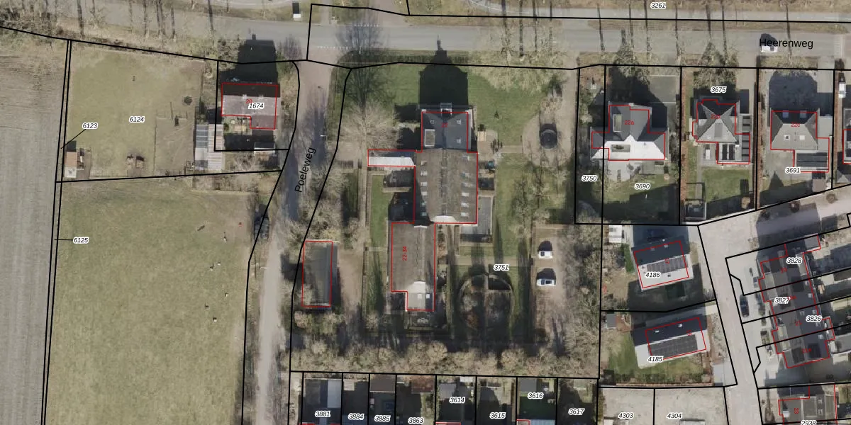 Het perceel waarop Poeleweg 22 staat heeft een oppervlakte van 4698 m². Dit is een zeer groot perceel. De perceeloppervlakte wordt geregistreerd door het Kadaster. Gedetailleerde informatie over de maten van dit perceel kunt u vinden in het rapport Kadastrale kaart met maatvoering van Poeleweg 22.