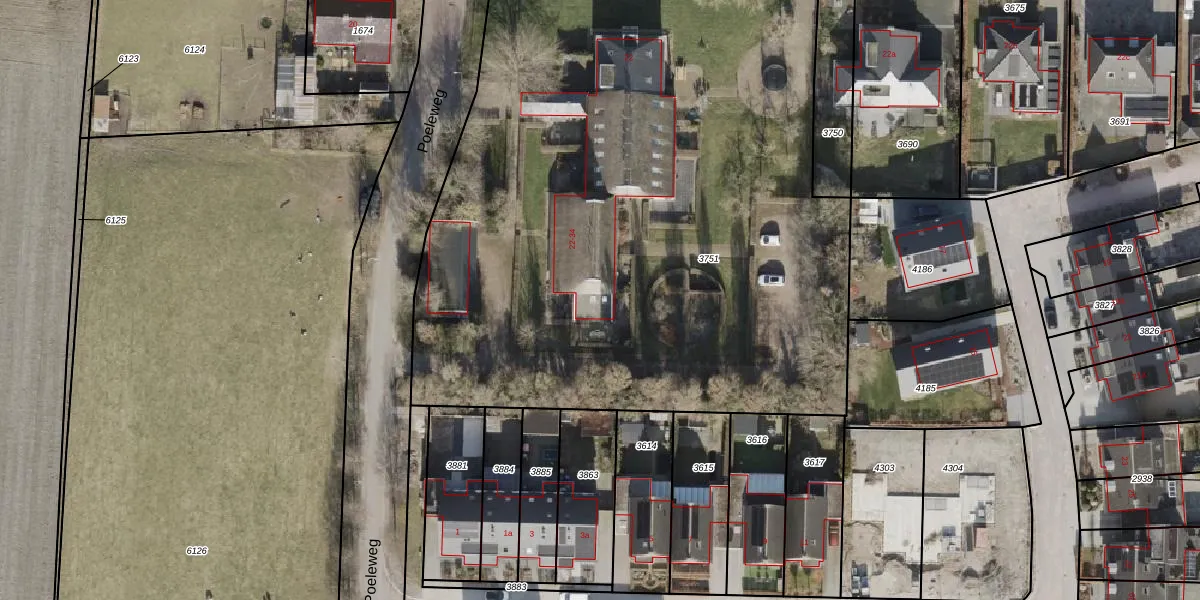 Het perceel waarop Poeleweg 34 staat heeft een oppervlakte van 4698 m². Dit is een zeer groot perceel. De perceeloppervlakte wordt geregistreerd door het Kadaster. Gedetailleerde informatie over de maten van dit perceel kunt u vinden in het rapport Kadastrale kaart met maatvoering van Poeleweg 34.