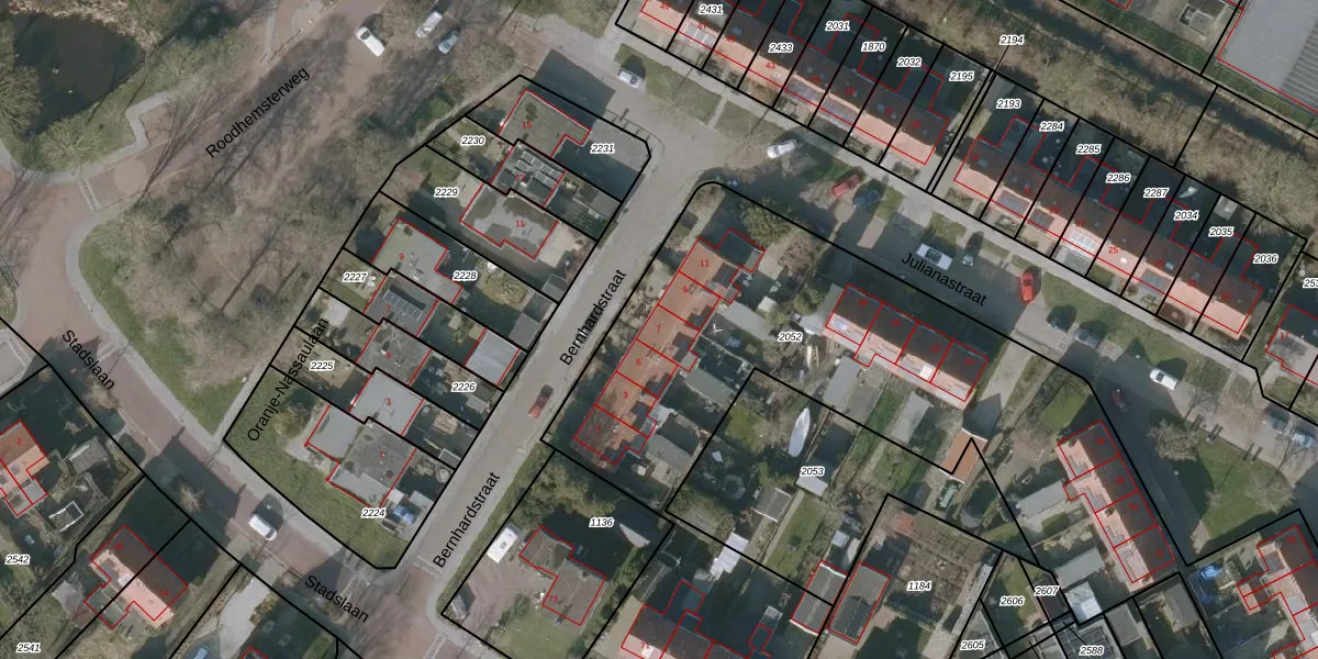 Bernhardstraat 7 is gelegen op kadastraal perceel IJL00B2052. Deze kadastrale aanduiding is uniek en wordt gebruikt door het Kadaster om eigendomsrechten en andere zakelijke rechten vast te leggen. Het perceel maakt onderdeel uit van de kadastrale gemeente IJlst.