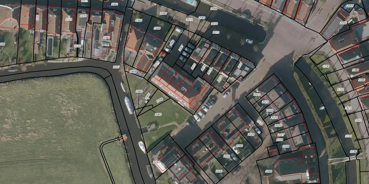 Het perceel waarop Eegracht 12 staat heeft een oppervlakte van 511 m². Dit is een groot perceel. De perceeloppervlakte wordt geregistreerd door het Kadaster. Gedetailleerde informatie over de maten van dit perceel kunt u vinden in het rapport Kadastrale kaart met maatvoering van Eegracht 12.
