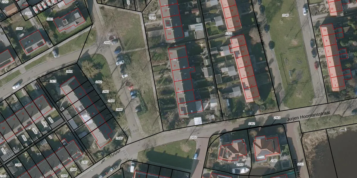Het perceel waarop jonker Rispensstraat 5 staat heeft een oppervlakte van 2590 m². Dit is een zeer groot perceel. De perceeloppervlakte wordt geregistreerd door het Kadaster. Gedetailleerde informatie over de maten van dit perceel kunt u vinden in het rapport Kadastrale kaart met maatvoering van jonker Rispensstraat 5.