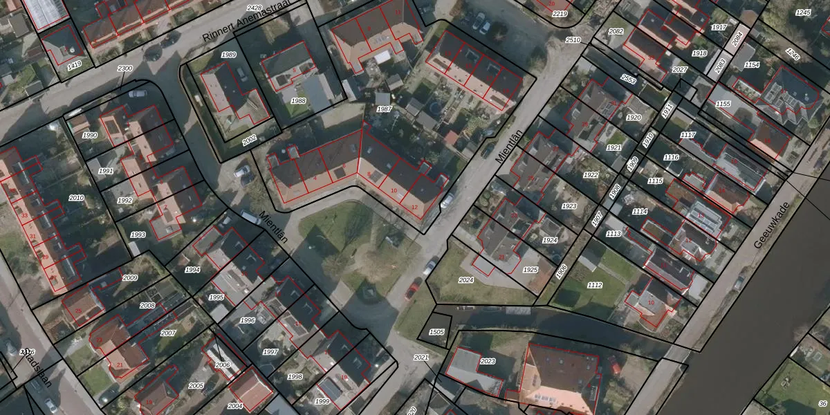 Het perceel waarop Mientlân 12 staat heeft een oppervlakte van 2119 m². Dit is een zeer groot perceel. De perceeloppervlakte wordt geregistreerd door het Kadaster. Gedetailleerde informatie over de maten van dit perceel kunt u vinden in het rapport Kadastrale kaart met maatvoering van Mientlân 12.