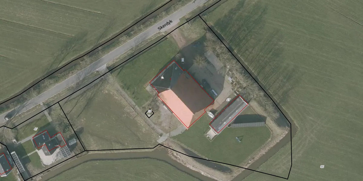 Het perceel waarop Skerdyk 6 staat heeft een oppervlakte van 6495 m². Dit is een zeer groot perceel. De perceeloppervlakte wordt geregistreerd door het Kadaster. Gedetailleerde informatie over de maten van dit perceel kunt u vinden in het rapport Kadastrale kaart met maatvoering van Skerdyk 6.