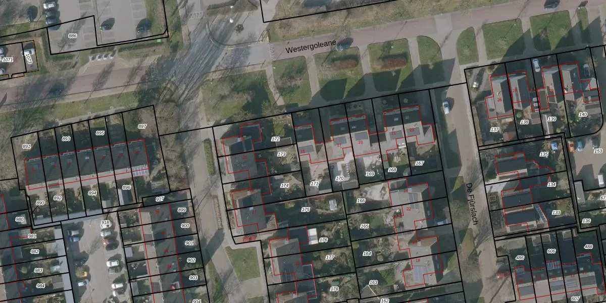 Gebruik de zoekbalk of klik op een perceel voor informatie over de adressen binnen dit perceel.
