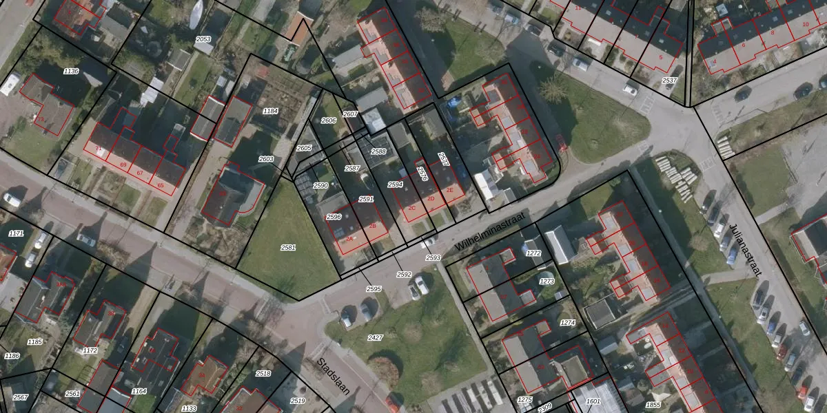 Wilhelminastraat 2-C is gelegen op kadastraal perceel IJL00B2594. Deze kadastrale aanduiding is uniek en wordt gebruikt door het Kadaster om eigendomsrechten en andere zakelijke rechten vast te leggen. Het perceel maakt onderdeel uit van de kadastrale gemeente IJlst.