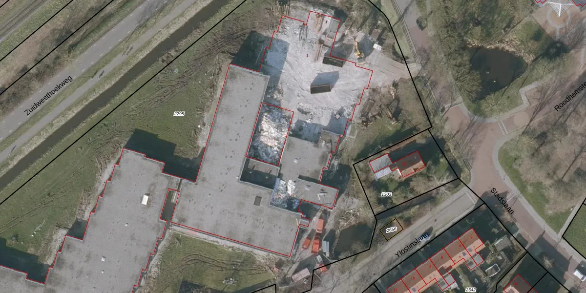 Het perceel waarop Ylostinslaan 1-3 staat heeft een oppervlakte van 1,3 ha. Dit is een zeer groot perceel. De perceeloppervlakte wordt geregistreerd door het Kadaster. Gedetailleerde informatie over de maten van dit perceel kunt u vinden in het rapport Kadastrale kaart met maatvoering van Ylostinslaan 1-3.