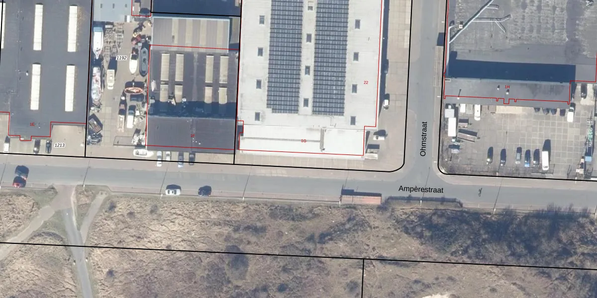 Het perceel waarop Ampèrestraat 1-G staat heeft een oppervlakte van 5521 m². Dit is een zeer groot perceel. De perceeloppervlakte wordt geregistreerd door het Kadaster. Gedetailleerde informatie over de maten van dit perceel kunt u vinden in het rapport Kadastrale kaart met maatvoering van Ampèrestraat 1-G.