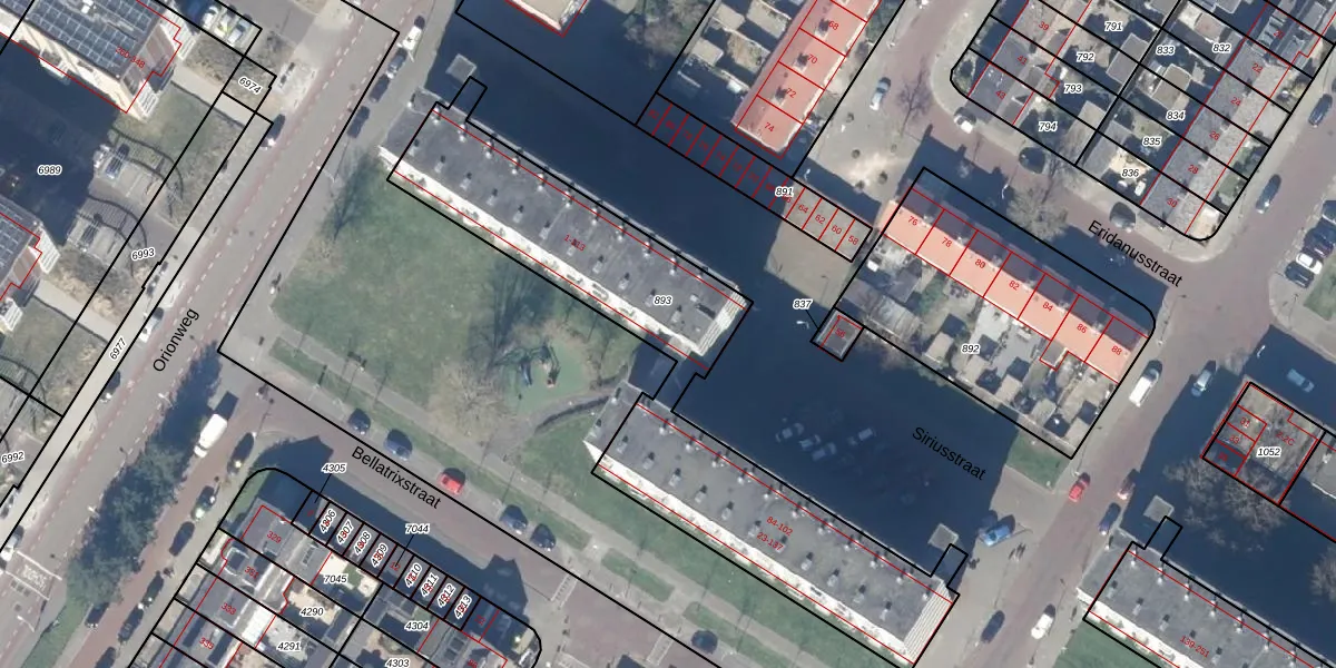 Het perceel waarop Bellatrixstraat 21 staat heeft een oppervlakte van 1593 m². Dit is een zeer groot perceel. De perceeloppervlakte wordt geregistreerd door het Kadaster. Gedetailleerde informatie over de maten van dit perceel kunt u vinden in het rapport Kadastrale kaart met maatvoering van Bellatrixstraat 21.