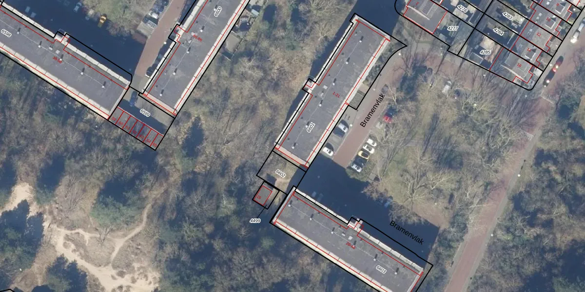 Het perceel waarop Bramenvlak 21 staat heeft een oppervlakte van 860 m². Dit is een groot perceel. De perceeloppervlakte wordt geregistreerd door het Kadaster. Gedetailleerde informatie over de maten van dit perceel kunt u vinden in het rapport Kadastrale kaart met maatvoering van Bramenvlak 21.