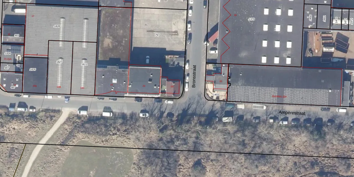 Het perceel waarop Bronsstraat 20 staat heeft een oppervlakte van 2524 m². Dit is een zeer groot perceel. De perceeloppervlakte wordt geregistreerd door het Kadaster. Gedetailleerde informatie over de maten van dit perceel kunt u vinden in het rapport Kadastrale kaart met maatvoering van Bronsstraat 20.
