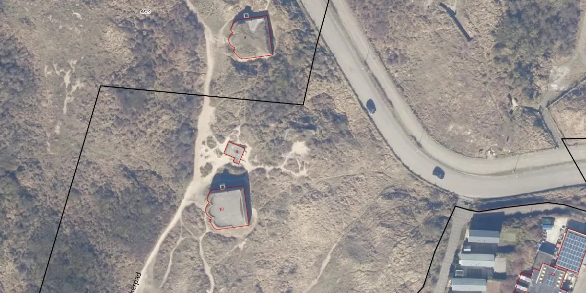 Het perceel waarop Bunkerpad 6 staat heeft een oppervlakte van 5,3 ha. Dit is een zeer groot perceel. De perceeloppervlakte wordt geregistreerd door het Kadaster. Gedetailleerde informatie over de maten van dit perceel kunt u vinden in het rapport Kadastrale kaart met maatvoering van Bunkerpad 6.