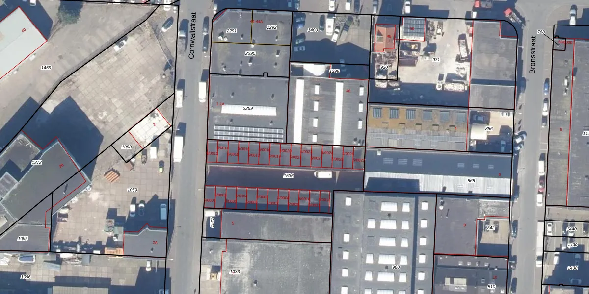 Het perceel waarop Cornwallstraat 5-0021 staat heeft een oppervlakte van 1175 m². Dit is een zeer groot perceel. De perceeloppervlakte wordt geregistreerd door het Kadaster. Gedetailleerde informatie over de maten van dit perceel kunt u vinden in het rapport Kadastrale kaart met maatvoering van Cornwallstraat 5-0021.