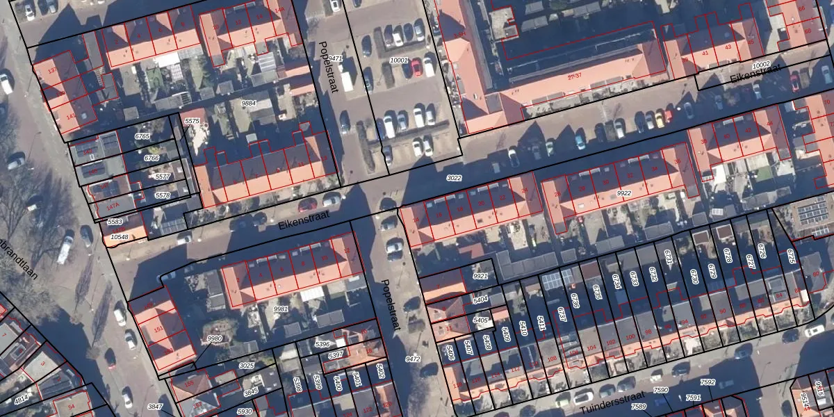 Het perceel waarop Eikenstraat 14 staat heeft een oppervlakte van 2494 m². Dit is een zeer groot perceel. De perceeloppervlakte wordt geregistreerd door het Kadaster. Gedetailleerde informatie over de maten van dit perceel kunt u vinden in het rapport Kadastrale kaart met maatvoering van Eikenstraat 14.