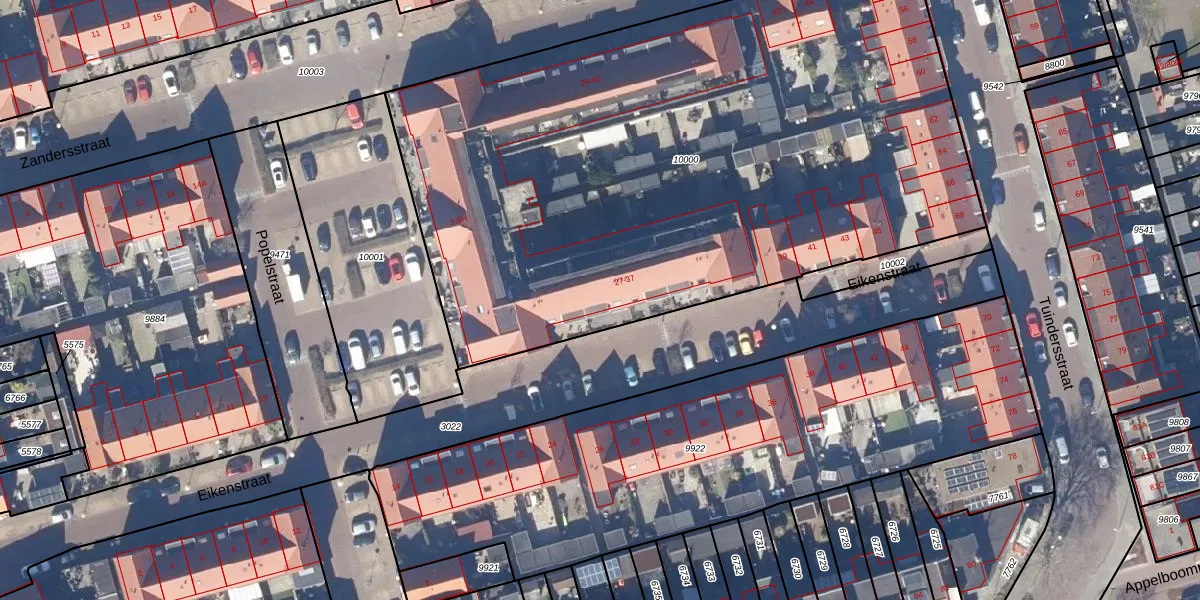 Het perceel waarop Eikenstraat 31 staat heeft een oppervlakte van 4340 m². Dit is een zeer groot perceel. De perceeloppervlakte wordt geregistreerd door het Kadaster. Gedetailleerde informatie over de maten van dit perceel kunt u vinden in het rapport Kadastrale kaart met maatvoering van Eikenstraat 31.