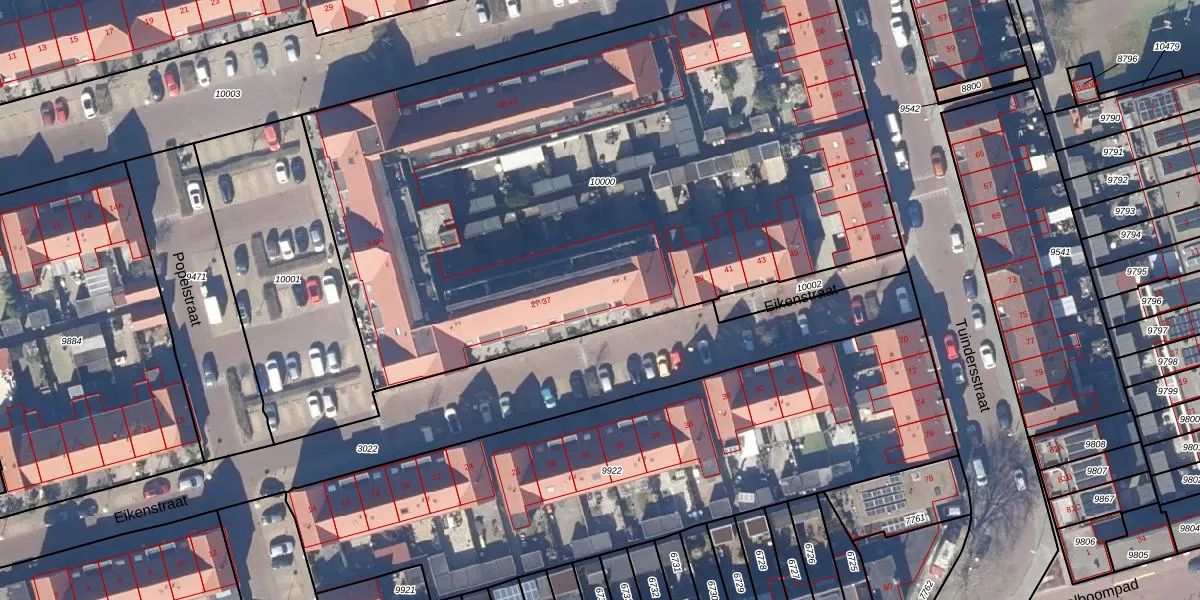 Het perceel waarop Eikenstraat 35 staat heeft een oppervlakte van 4340 m². Dit is een zeer groot perceel. De perceeloppervlakte wordt geregistreerd door het Kadaster. Gedetailleerde informatie over de maten van dit perceel kunt u vinden in het rapport Kadastrale kaart met maatvoering van Eikenstraat 35.