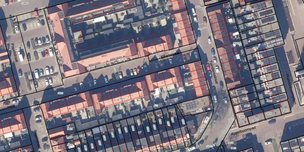 Het perceel waarop Eikenstraat 38 staat heeft een oppervlakte van 2494 m². Dit is een zeer groot perceel. De perceeloppervlakte wordt geregistreerd door het Kadaster. Gedetailleerde informatie over de maten van dit perceel kunt u vinden in het rapport Kadastrale kaart met maatvoering van Eikenstraat 38.