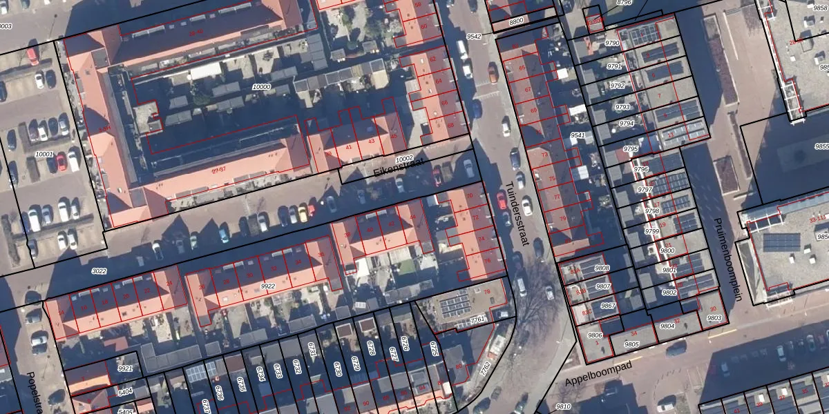 Het perceel waarop Eikenstraat 44 staat heeft een oppervlakte van 2494 m². Dit is een zeer groot perceel. De perceeloppervlakte wordt geregistreerd door het Kadaster. Gedetailleerde informatie over de maten van dit perceel kunt u vinden in het rapport Kadastrale kaart met maatvoering van Eikenstraat 44.