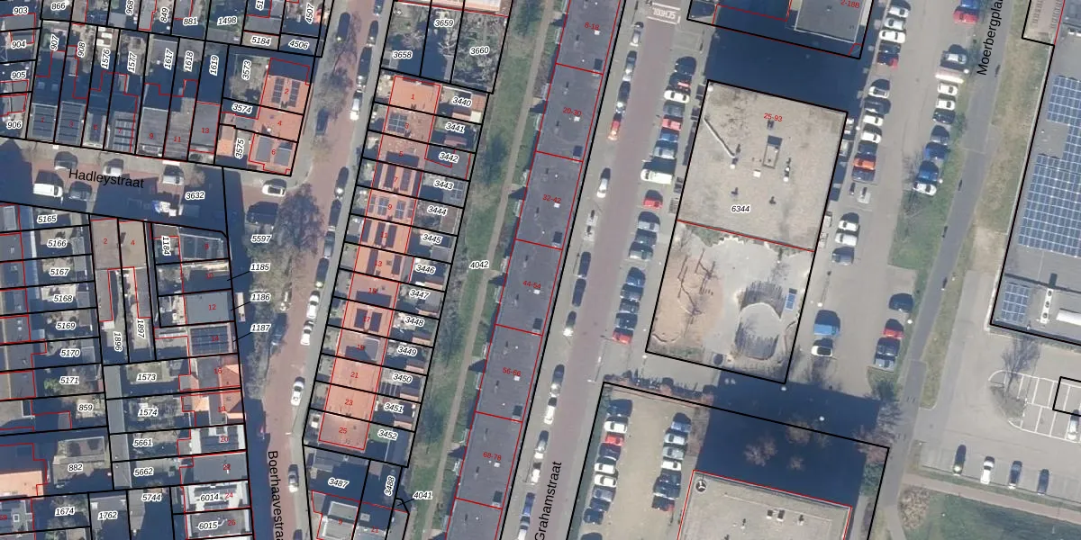 Het perceel waarop Grahamstraat 48 staat heeft een oppervlakte van 2295 m². Dit is een zeer groot perceel. De perceeloppervlakte wordt geregistreerd door het Kadaster. Gedetailleerde informatie over de maten van dit perceel kunt u vinden in het rapport Kadastrale kaart met maatvoering van Grahamstraat 48.